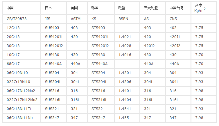 不銹鋼板標(biāo)準(zhǔn)鋼號密度表: